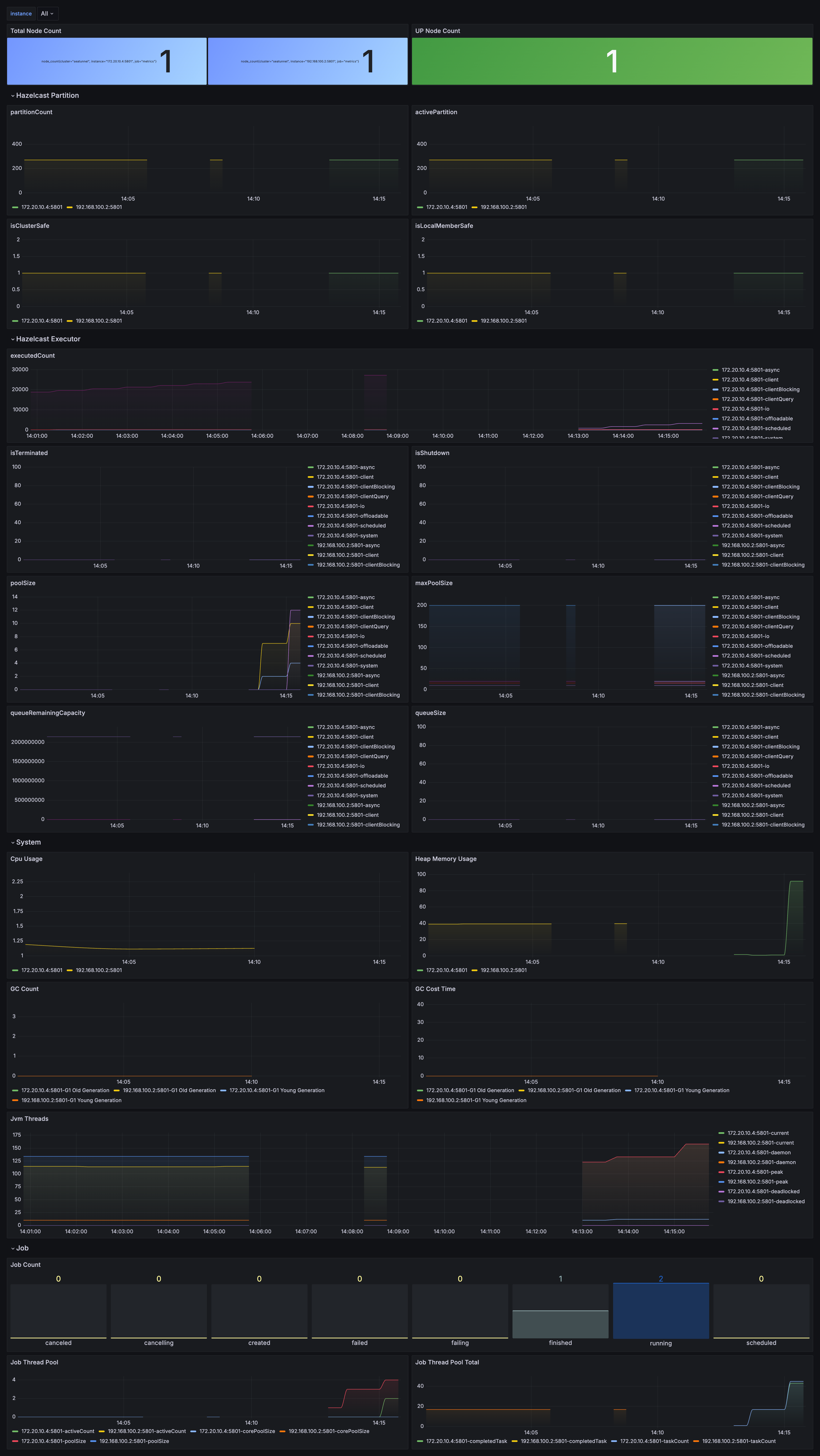 Note: All metrics both have the same labelName cluster, that's value is the config of hazelcast.cluster-name.